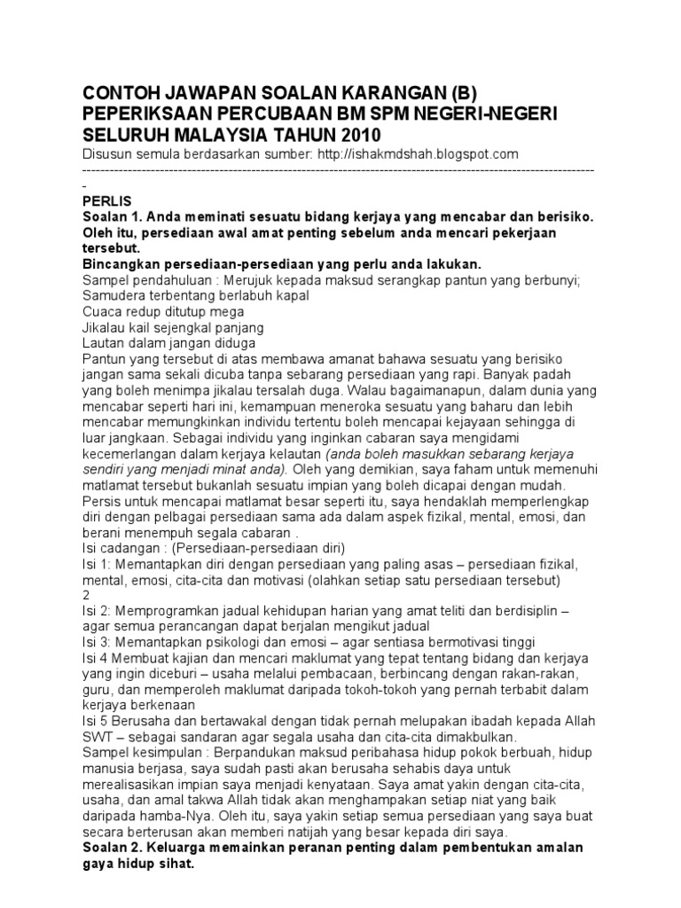 Contoh Jawapan Soalan Karangan Spm Pdf